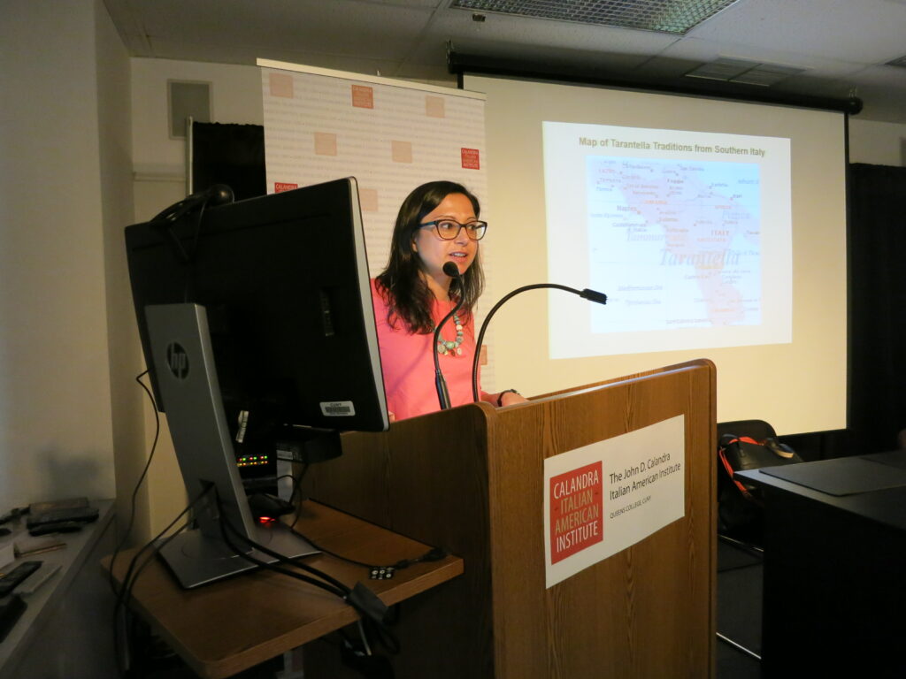 At the final event of our regularly scheduled programming for the term, Incoronata Inserra presented her book Global Tarantella (University of Illinois Press, 2017), which ventures into the history, global circulation, and recontextualization of tarantella, a genre of Southern Italian folk music and dance. Examining tarantella’s changing image and role among Italians and Italian Americans, Inserra illuminates how factors like tourism, translation, and world music venues have shifted the ethics of place embedded in the tarantella cultural tradition.