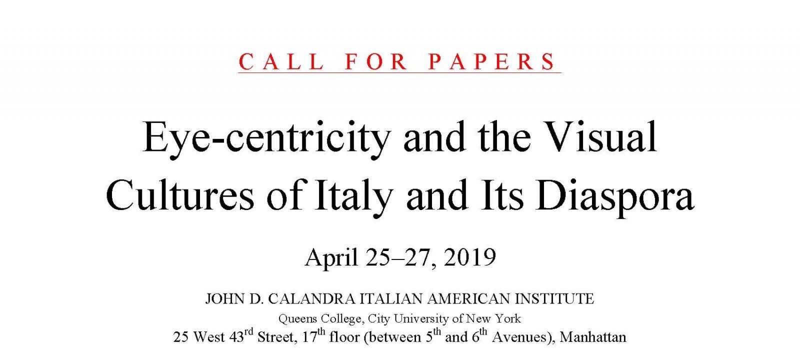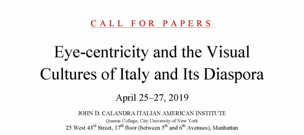 Click here to read the Call for Papers for our 2019 conference, Eye-centricity and the Visual Cultures of Italy and Its Diaspora.