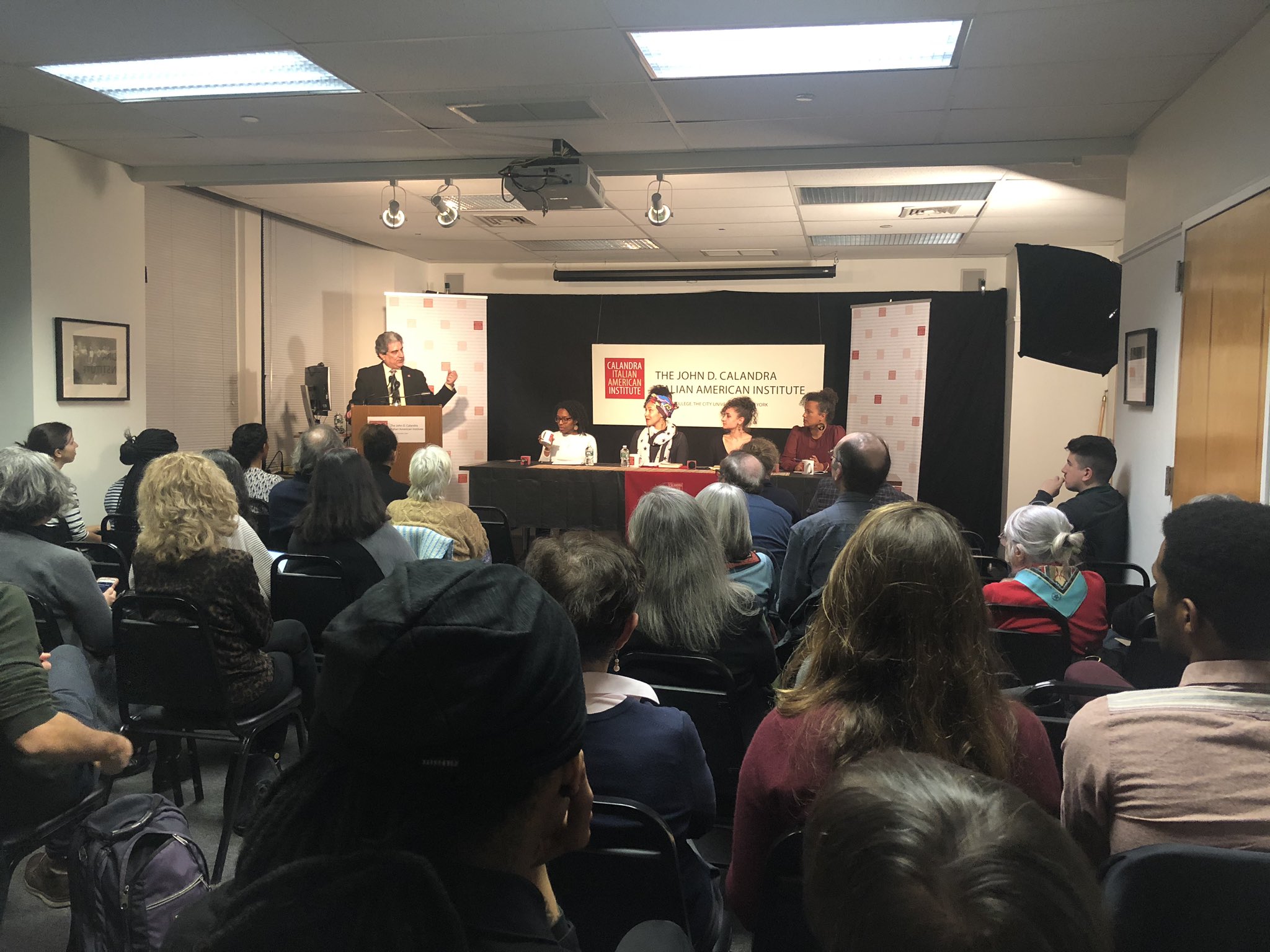 On February 4, 2020, at the Calandra Institute was a presentation of Future: il domani narrato dalle voci di oggi, edited by Igiaba Scego. The evening featured Calandra’s dean Anthony Julian Tamburri giving opening comments and serving as moderator; Candice Whitney, who gave a general presentation of the book; Camilla Hawthorne, who spoke on “The Significance of Future and ‘African Italy’”; and Marie Moise and Angelica Pesarini, who gave readings from the work.