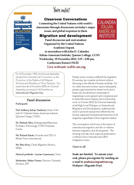 The conversation will focus on the nature of international migration and the co-relation between migration and development. The meeting will also have a special presentation on Media Tenor International’s 2013 Integration Index.