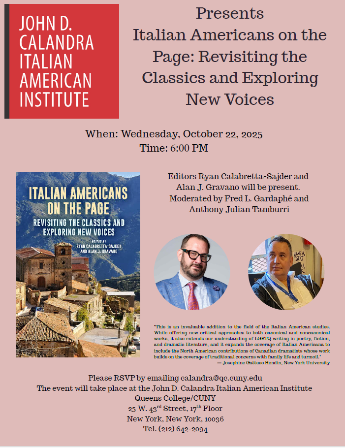 Book presentation of Italian Americans on the Page: Revisiting the Classics and Exploring New Voices with editors Ryan Calabretta-Sajder and Alan J. Gravano. Moderated by Fred L.…