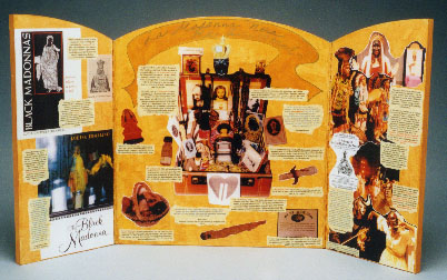 This exhibition explores the devotion of the Black Madonna (la Madonna Nera) in Italy and among Italian Americans. Curated by the Calandra Institute’s Dr. Joseph Sciorra and designed by visual artist B. Amore, the exhibit consists of three triptychs (each are 21.5″ x 39.5″ opened) examining the themes of:
